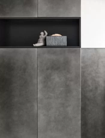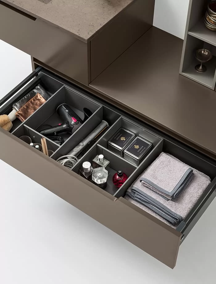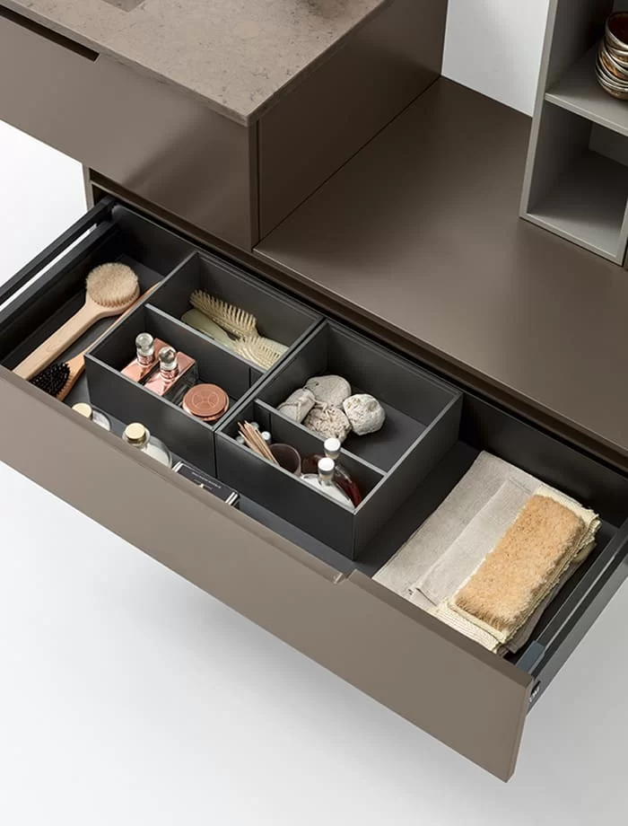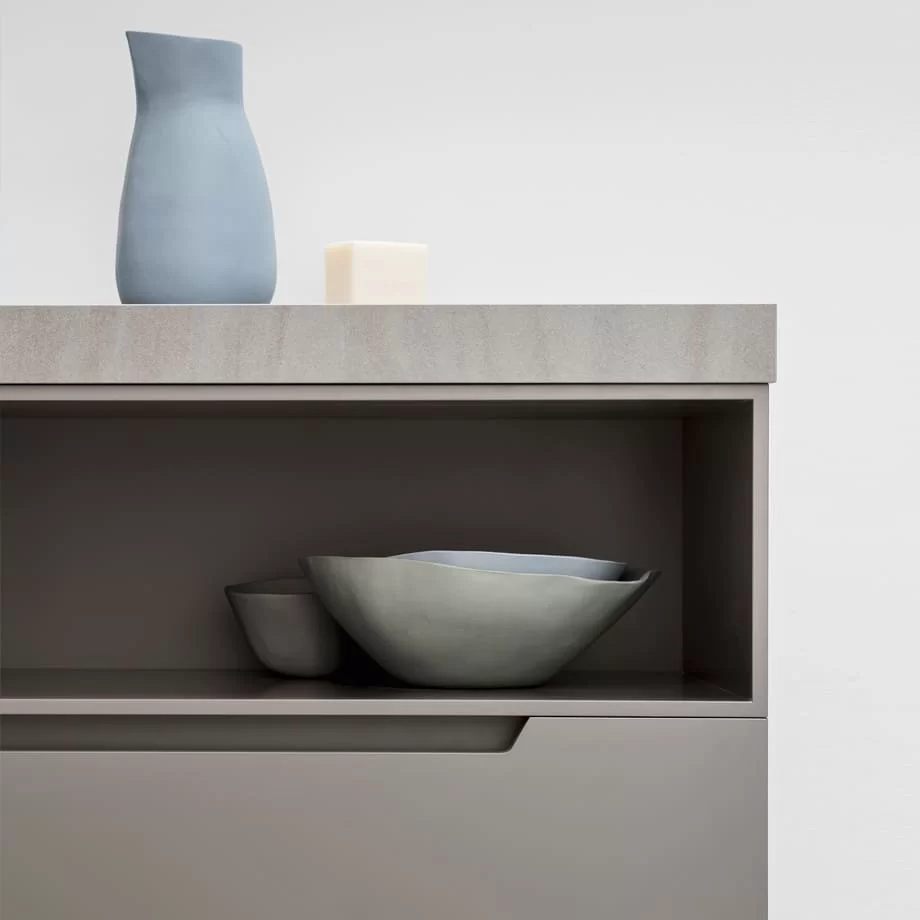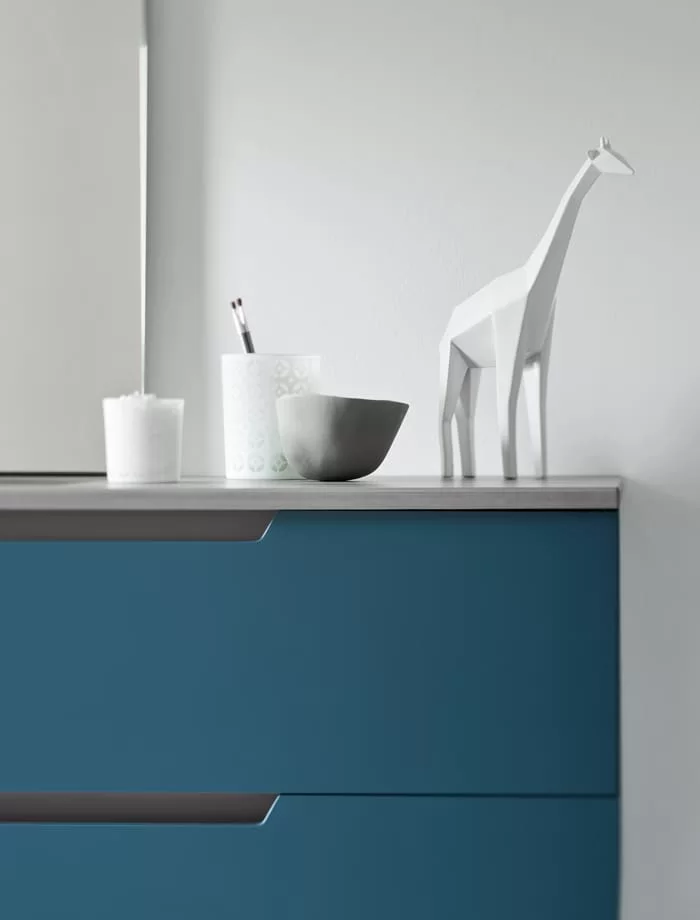 L’apertura a gola integrata nell’anta è il segno caratterizzante della collezione e il suo profilo a vista può essere personalizzato in tutte le tonalità laccate, per creare un look su misura: un dettaglio che trasforma la semplicità in un nuovo codice estetico. Scopri la grande libertà compositiva e l’ampia scelta di colori di Gold.