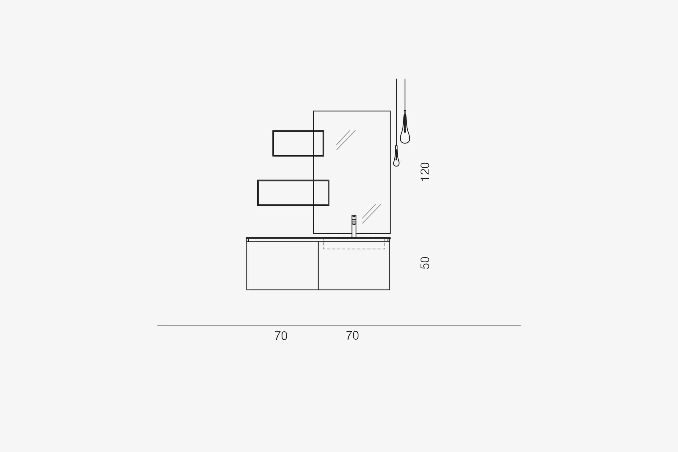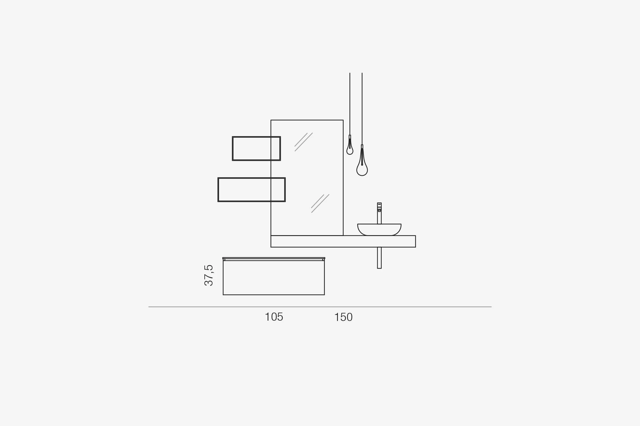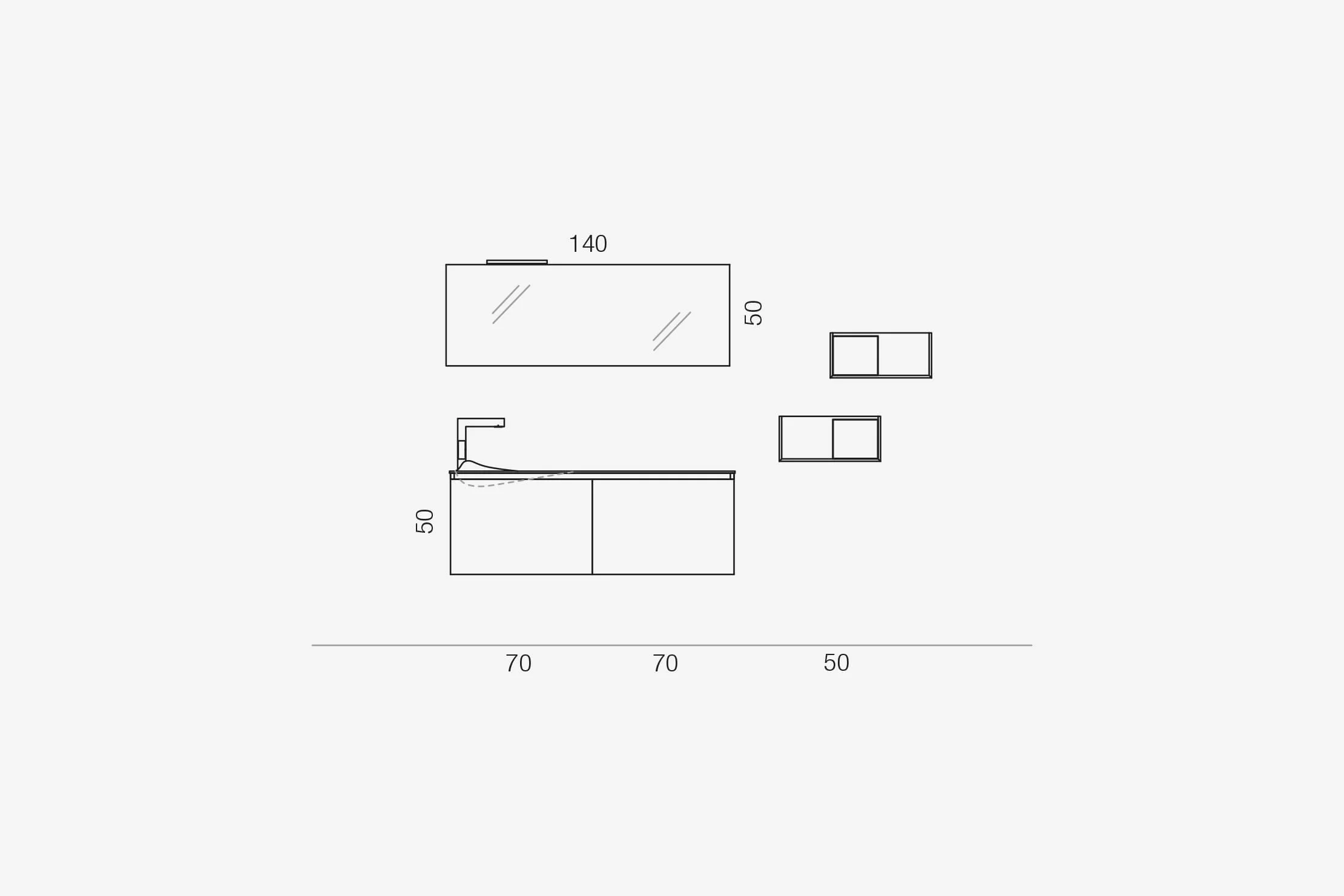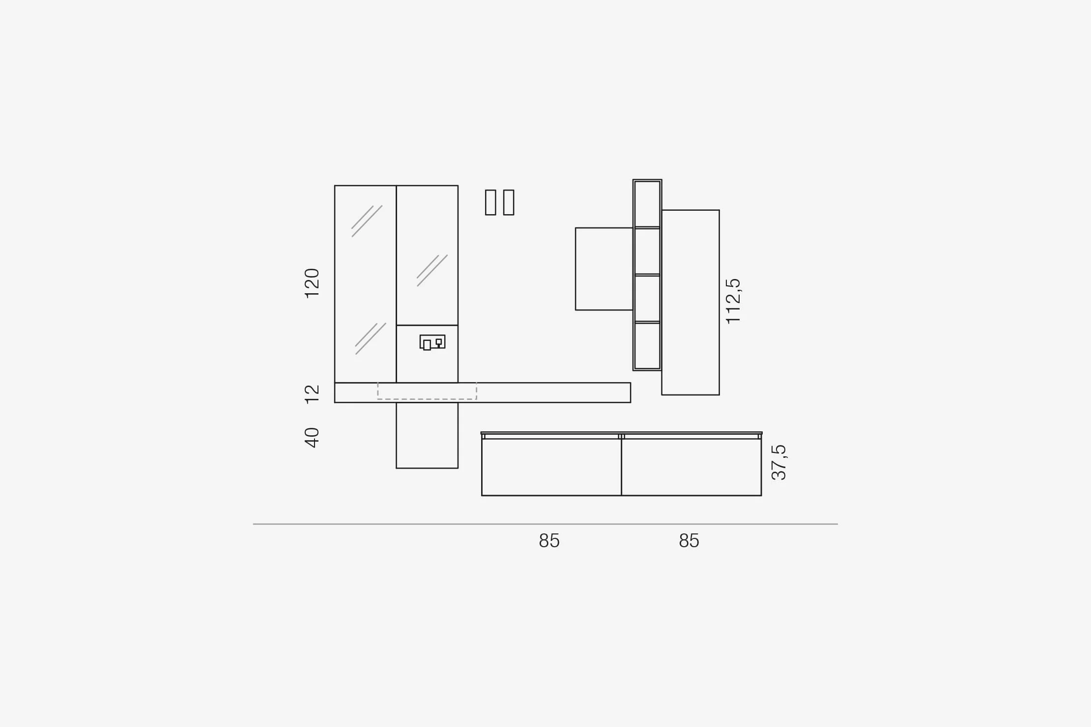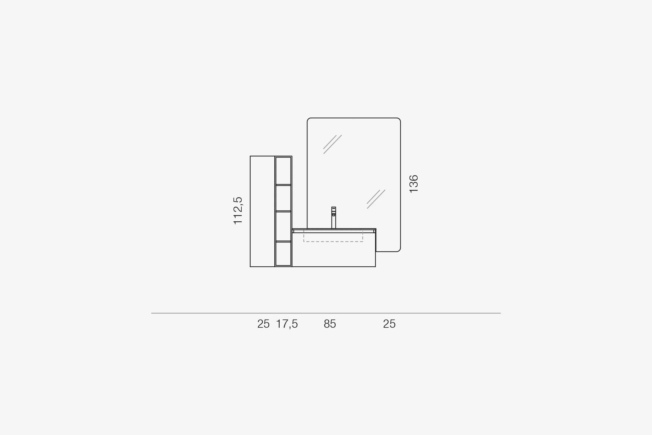 Una collezione dalle linee minimal di grande personalità, grazie all’anta con angolo a 45° che diventa maniglia e valorizza le finiture.